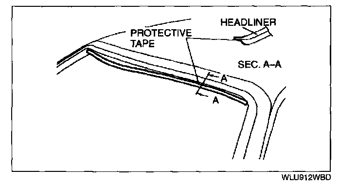 7. Apply protective tape along the rear edge of the headliner to protect it from damage.