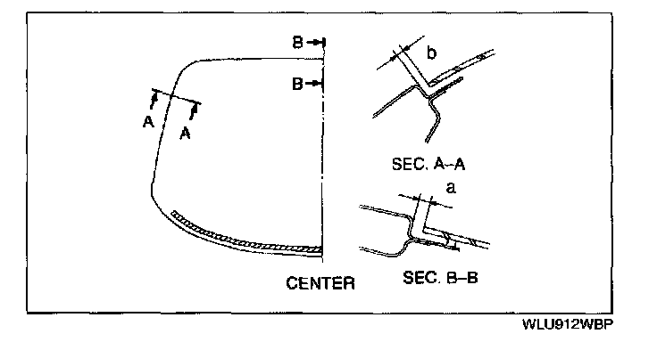 8. Temporarily install the glass onto the body and adjust the glass-to-body clearance as indicated.