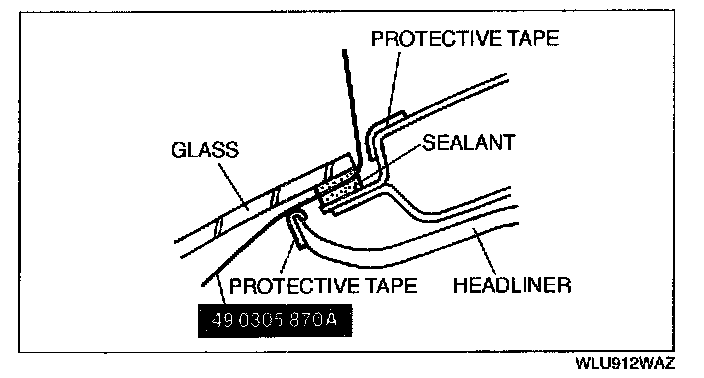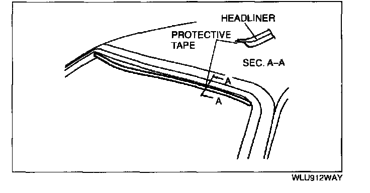 11. Apply protective tape along the front edge of the headliner and the dashboard to protect them from damage.