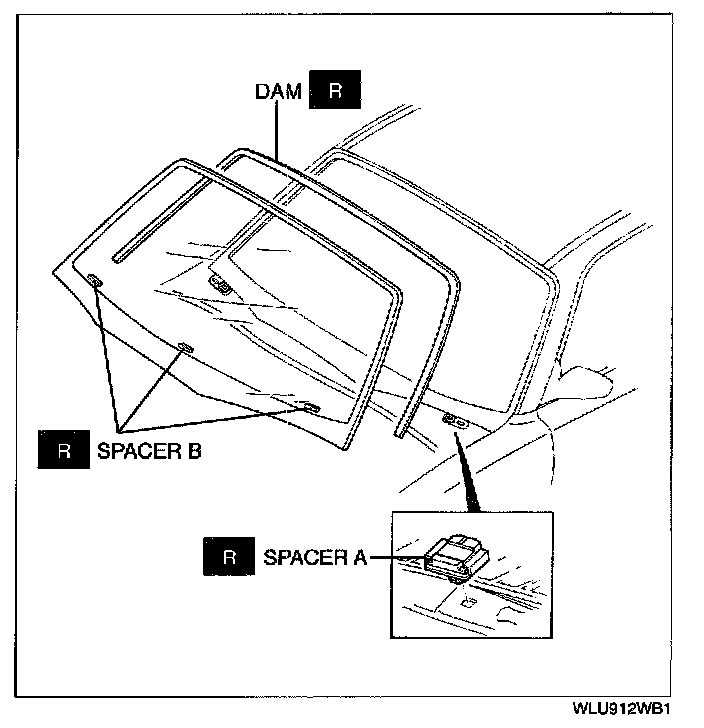 9. Apply primer to the bonding area of the glass and body using a brush. Keep the area free of dirt and grease, and do not touch the surface. Allow it to dry for approximately 30 minutes.