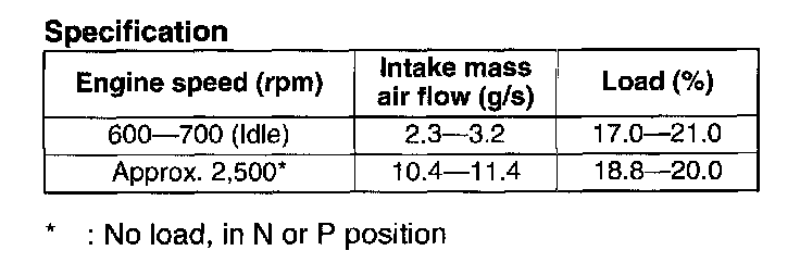 NOTE: The scan tool shows the MAF rate and load value.