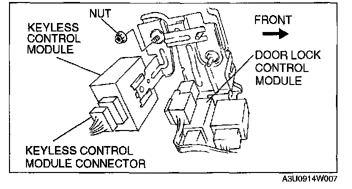2. Disconnect the keyless control module connector. (Under driver's side dash)