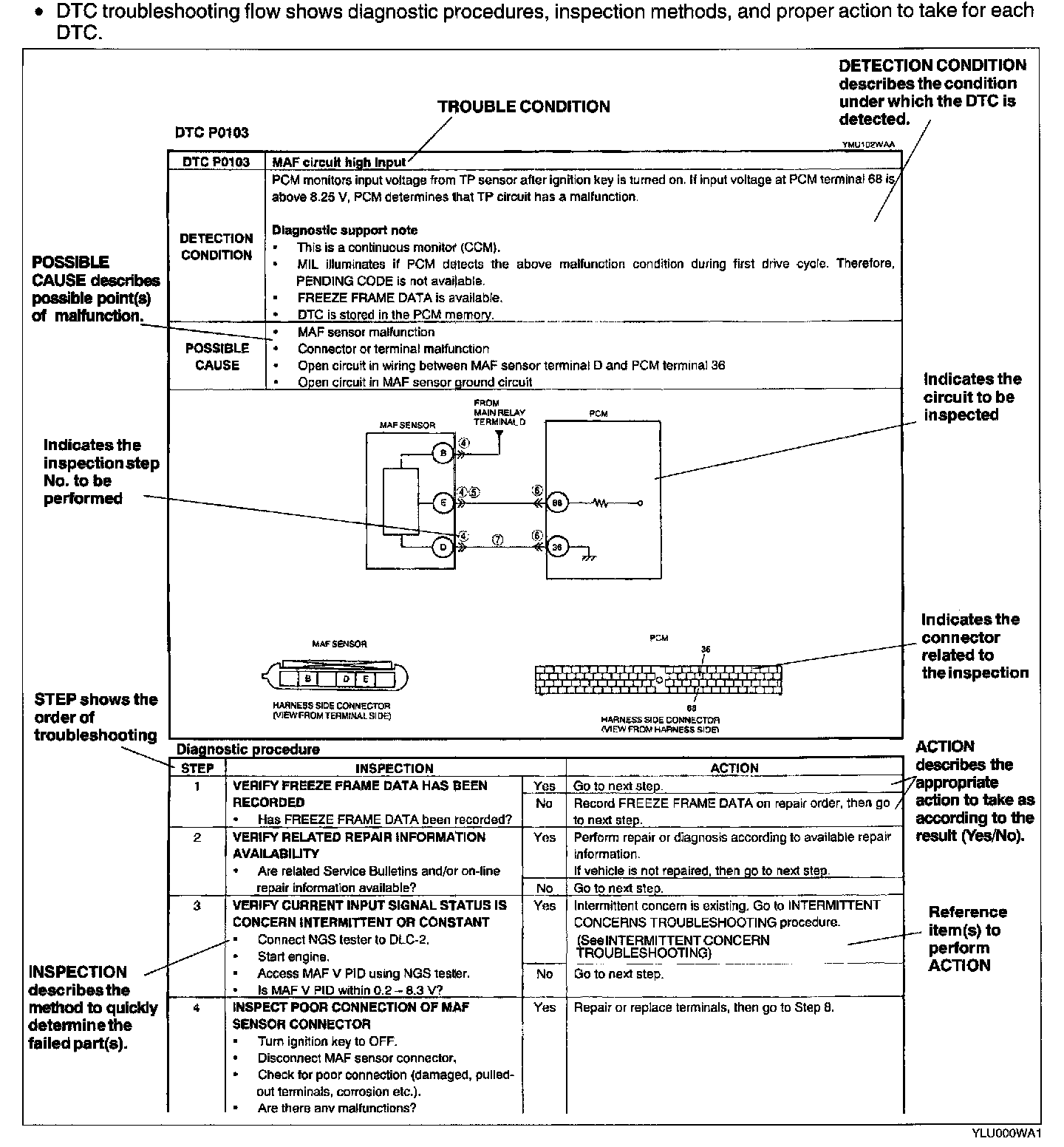 - Diagnostic trouble codes (DTCs) are important hints for repairing malfunctions that are difficult to simulate. Perform the specific DTC diagnostic inspection to quickly and accurately diagnose the malfunction.