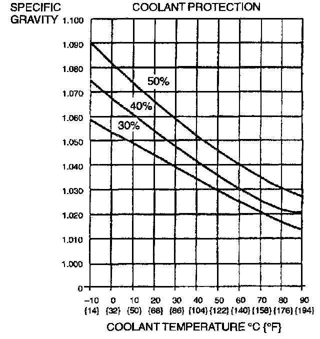 1. Measure the coolant temperature and specific gravity with a thermometer and a hydrometer.