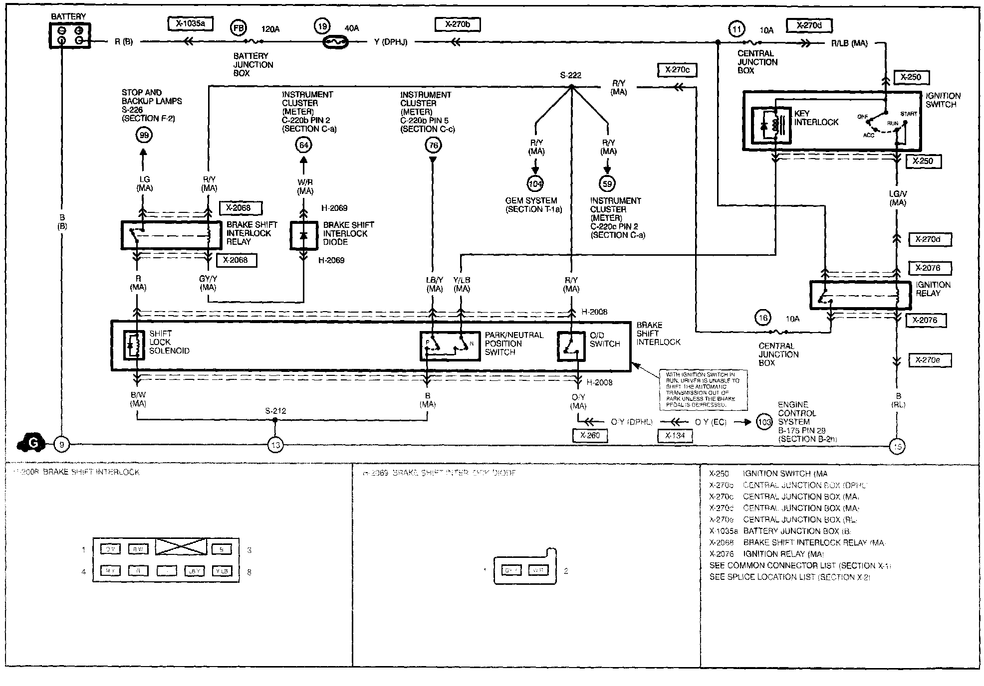 H-1 - Key Interlock System/Shift-lock System Circuit: