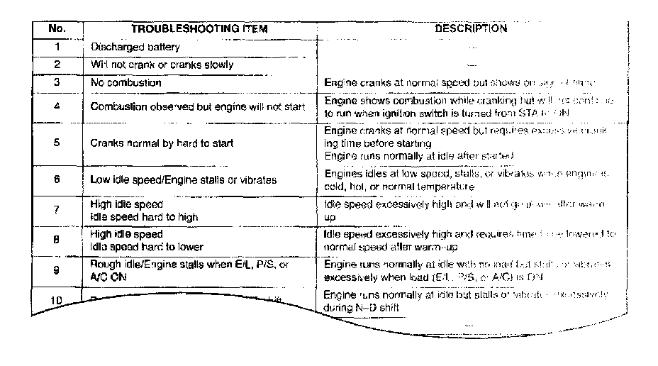 - The diagnostic index lists the symptoms of specific malfunctions. Select the symptoms related or most closely relating to the malfunction.