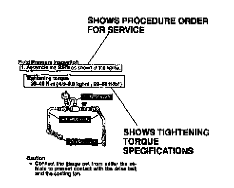 - Inspection and adjustment procedures are divided into steps. Important points regarding the location and contents of the procedures are explained in detail and shown in the illustrations.