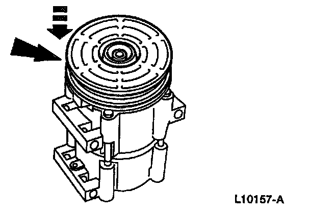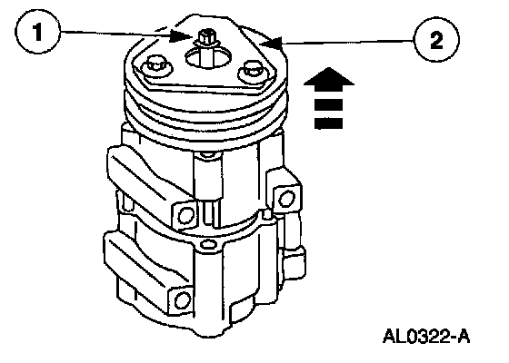 NOTE: The A/C clutch pulley is a tight fit on the A/C compressor head. It must be correctly aligned during installation.