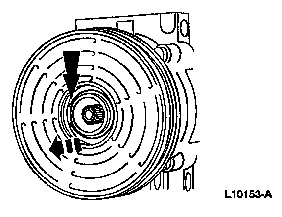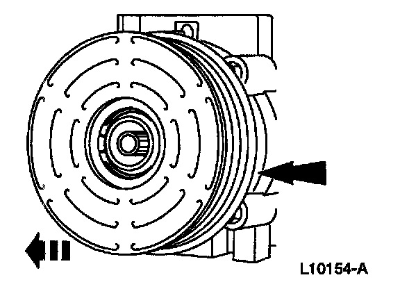 CAUTION: Do not use air tools. The A/C clutch field coil can be easily damaged.