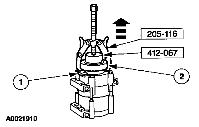 2. Using the special tools, remove the A/C clutch field coil.
