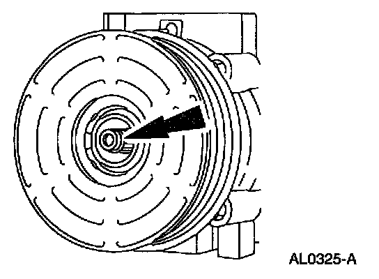 1. Thread an 8 x 1.25 mm bolt into the A/C clutch to force it from the compressor shaft.