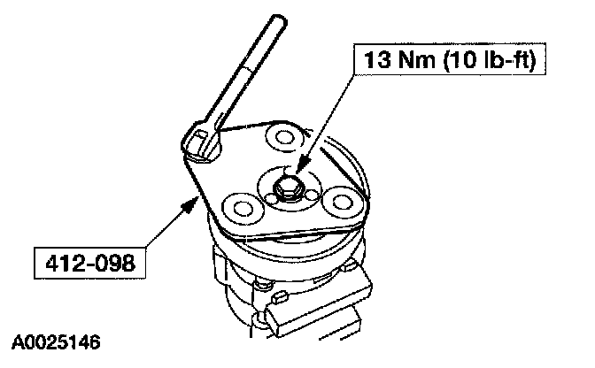 9. Install the A/C compressor. For additional information, refer to AIR CONDITIONING (A/C) COMPRESSOR - 2.0 L ZETEC or AIR CONDITIONING (A/C) COMPRESSOR - 3.0 L DURATEC (4V).