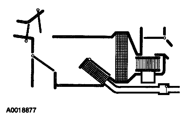 NOTE: A leak in the vacuum control circuits will send all airflow to the defroster outlets. This condition may occur during acceleration indicating a slow leak, exist at all times indicating a large leak, or it may exist only when specific functions are selected indicating a leak in that portion of the circuit.