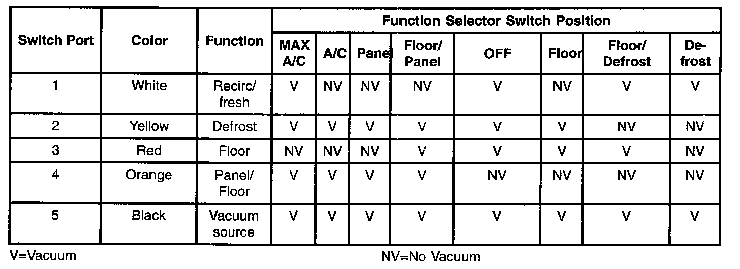 - The defrost blend door is at full vacuum while the footwell blend door is at no vacuum, closing both doors.