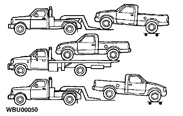 On 4WD vehicles, it is recommended that the vehicle be towed with a wheel lift or flatbed equipment.
