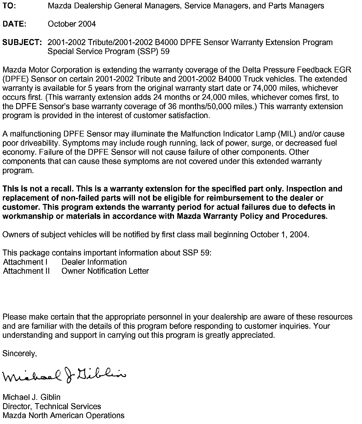 Recall - DPFE Sensor Replacement/Warranty Extension