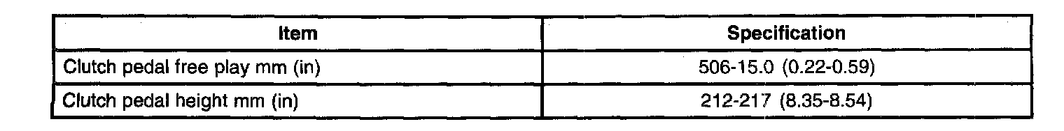 Clutch pedal free play 506 - 15.0 mm (0.22 - 0.59 in)