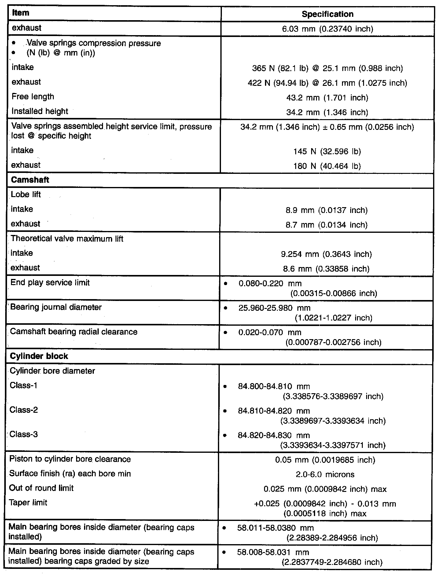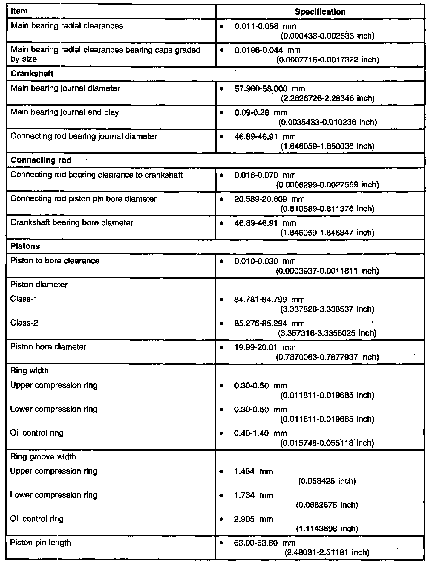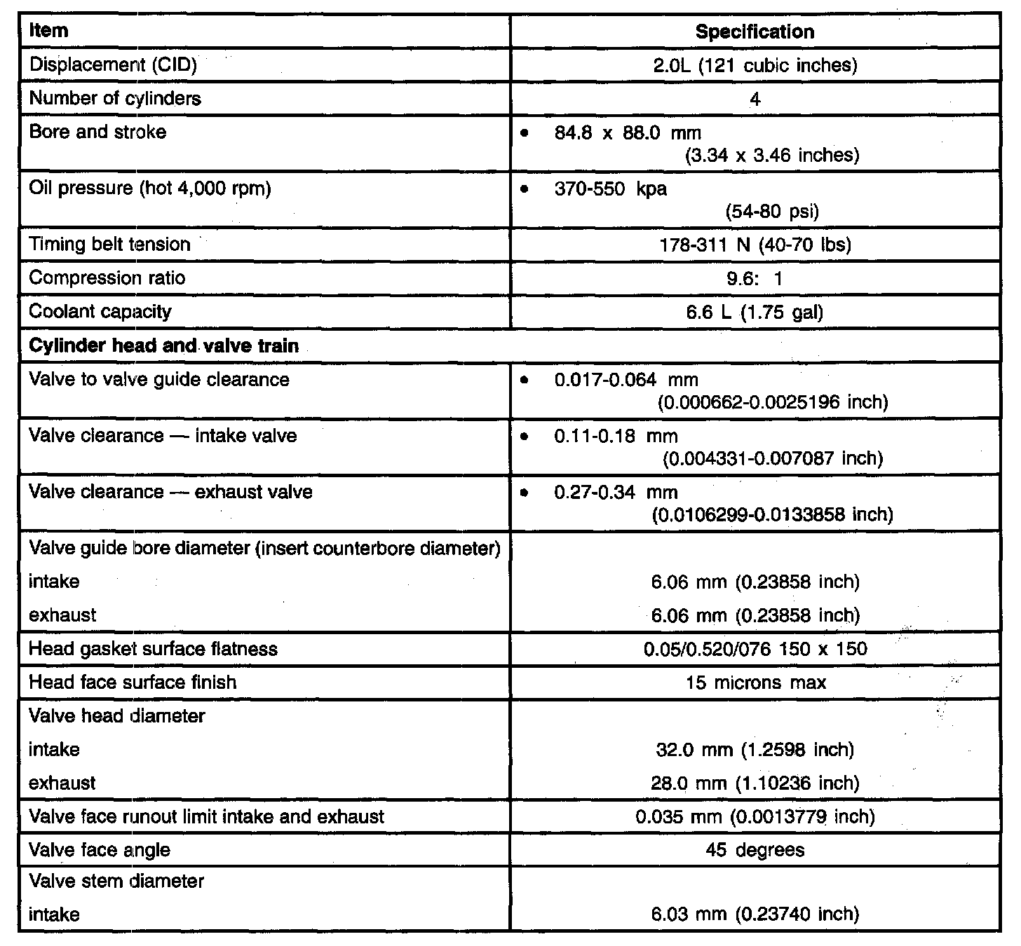General Specifications - 2.0L (Part 4):