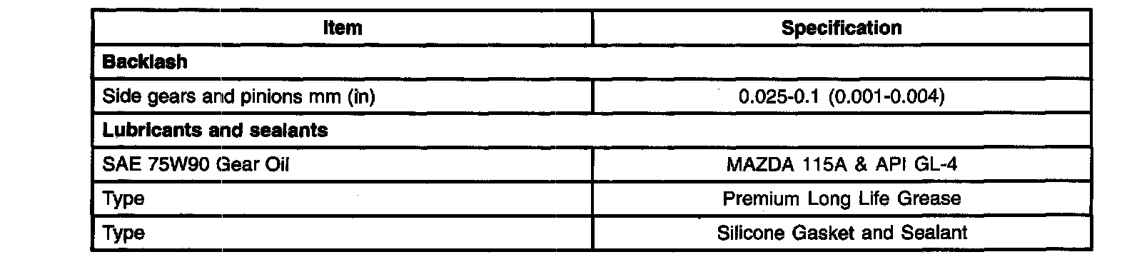 Side gears and pinions 0.025 - 0.1 mm (0.001 - 0.004 in)