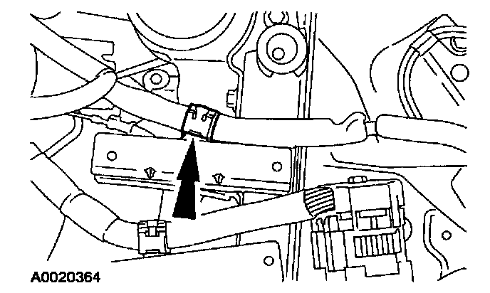 8. Disconnect the harness clip at the back of the engine.