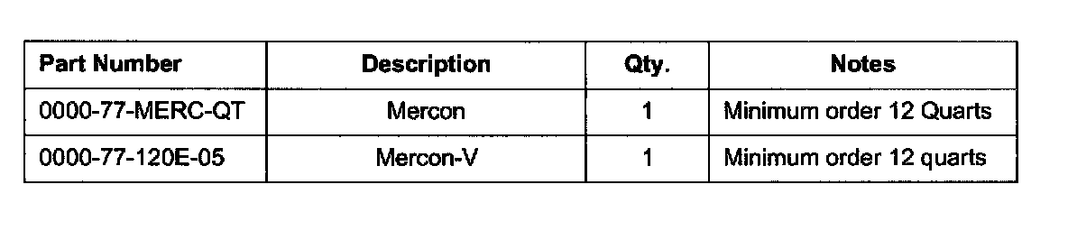 MERCON & MERCON V AUTOMATIC TRANSMISSION FLUID APPLICATIONS