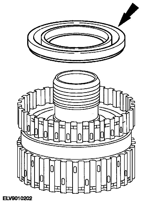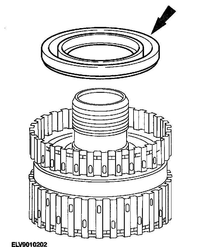 7. Remove and discard the direct clutch piston inner lip seal from the forward/coast/direct clutch cylinder assembly.