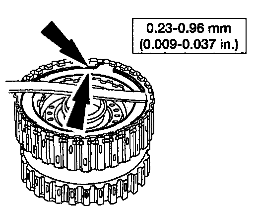 11. Using a feeler gauge, measure the clearance between the forward clutch pressure plate and the forward clutch pressure plate retaining ring.