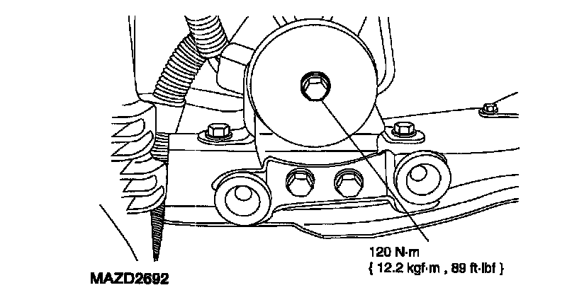 6. Remove the upper transaxle mount bolt.