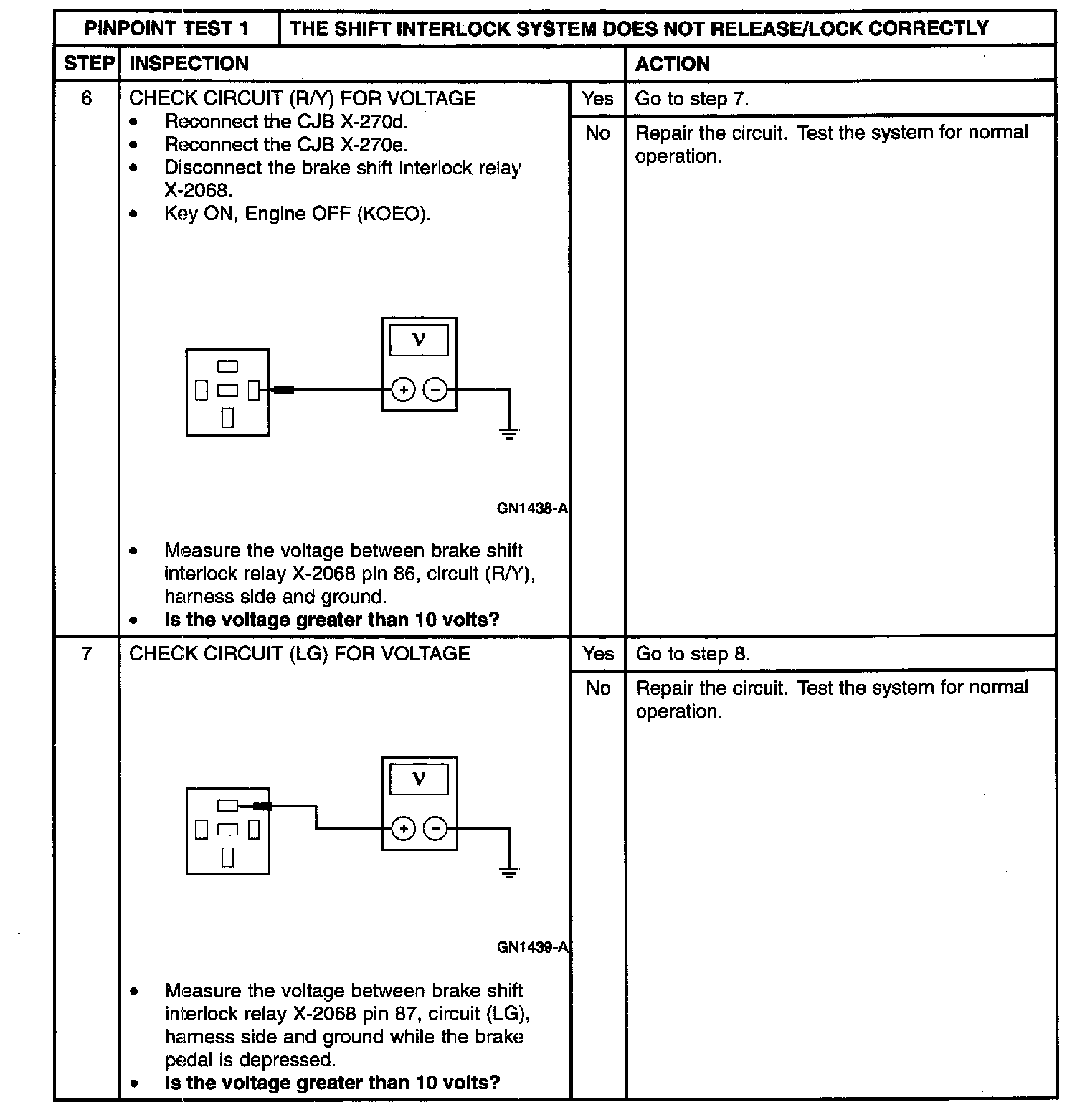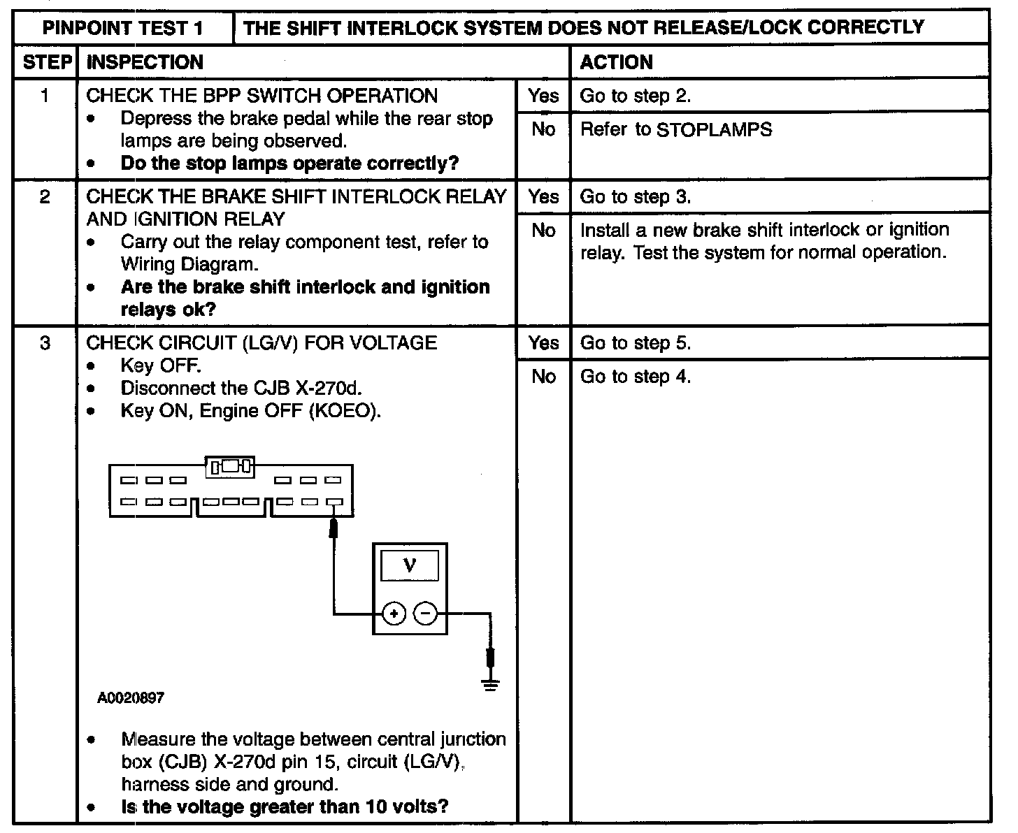 Pinpoint Test 1:Shift Interlock System Does Not Release