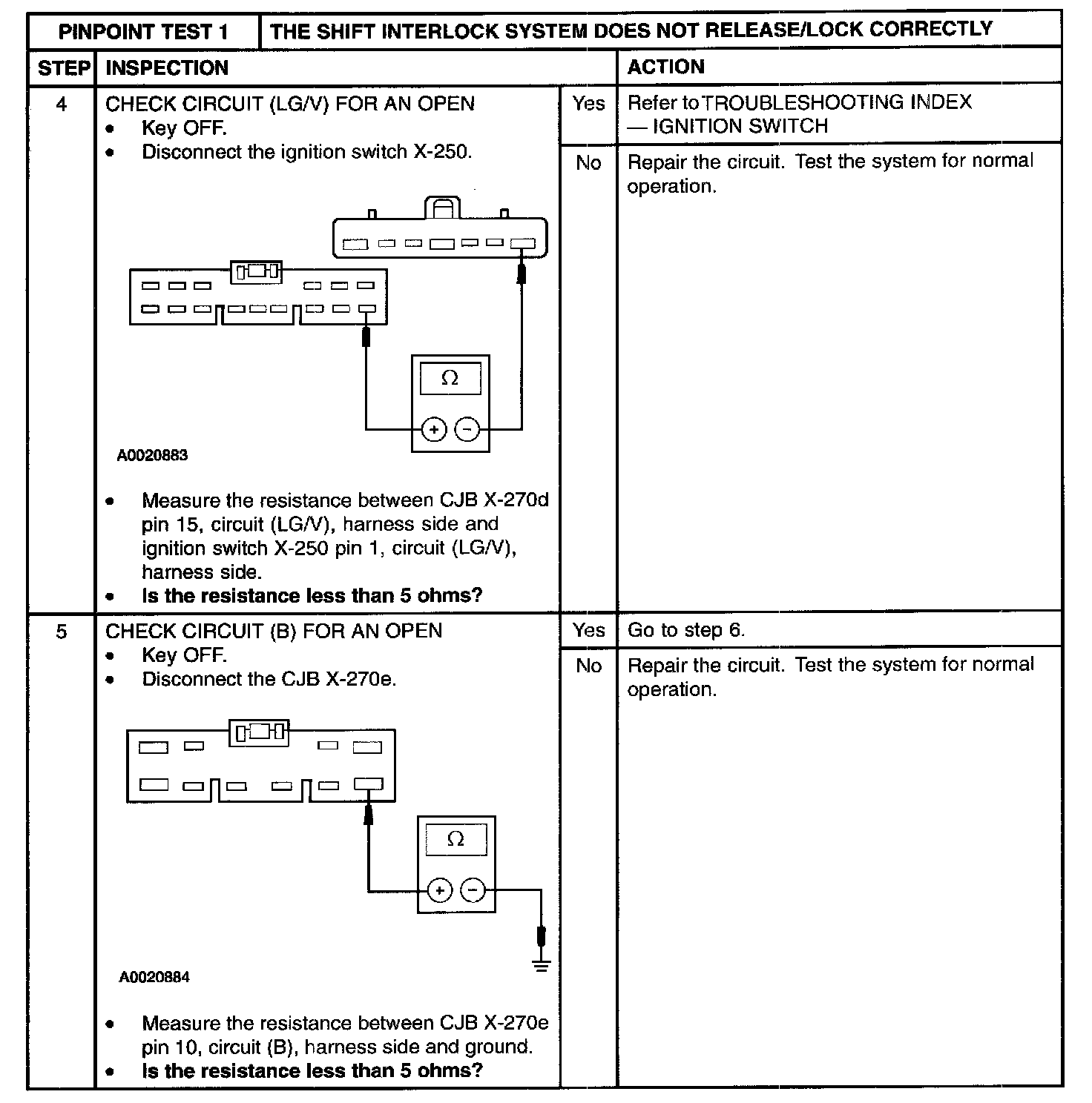PINPOINT TEST 1: THE SHIFT INTERLOCK SYSTEM DOES NOT RELEASE/LOCK CORRECTLY