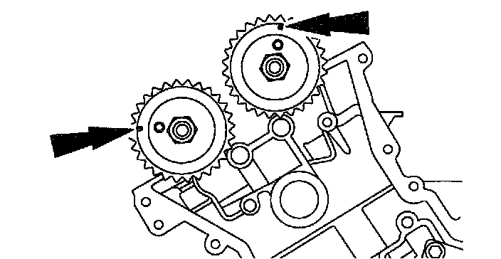 ^ Align the marks on the timing chain with the marks on the camshaft and crankshaft sprockets.