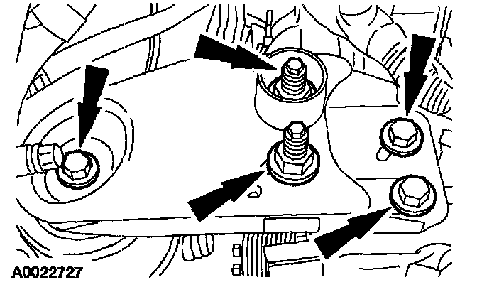 ^ The next seven steps must be carried out with the vehicle raised and the universal powertrain lift in position.