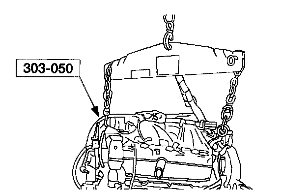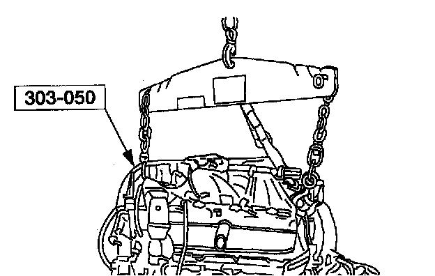 ^ Do not allow the engine oil pan to rest on the powertrain lift.