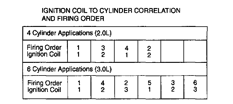 Ignition Coil To Cylinder Correlation And Firing Order (2.0L And 3.0L):