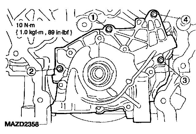 Oil pump bolts 10 Nm (89 in. lbs.)