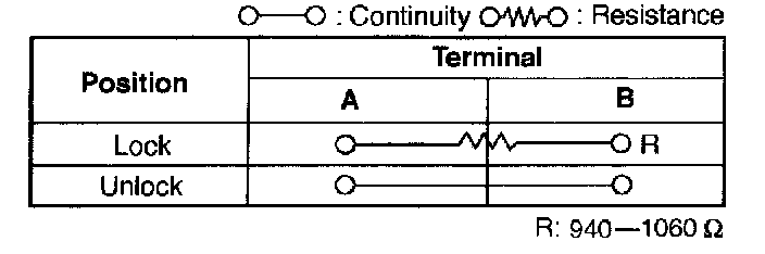 Inspect for continuity between the door lock switch terminals using an ohmmeter.