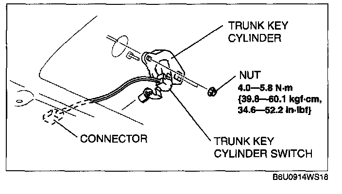 2. Remove the trunk key cylinder switch connector.