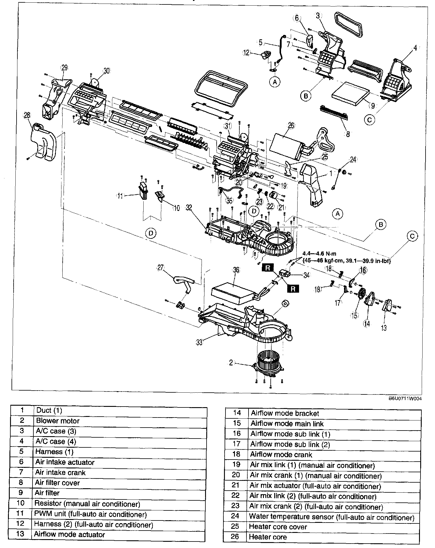 A/C UNIT DISASSEMBLY/ASSEMBLY1. Disassemble in the order indicated in the table.