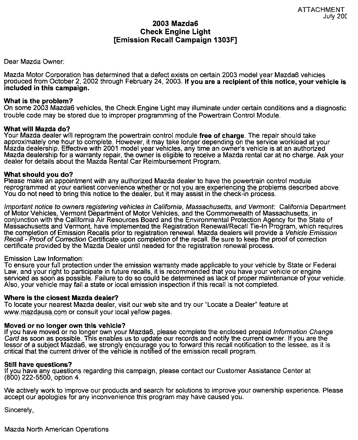 Attachment III - Owner Letter