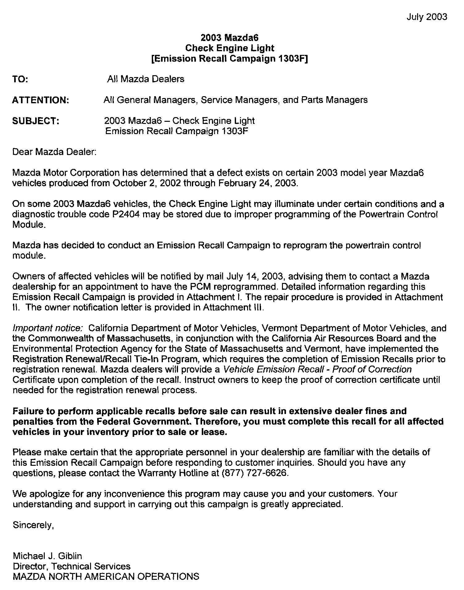 Recall - PCM Reprogramming for MIL/DTC P2404