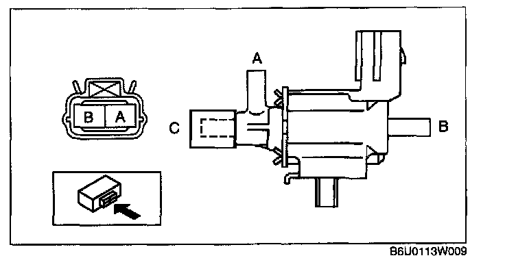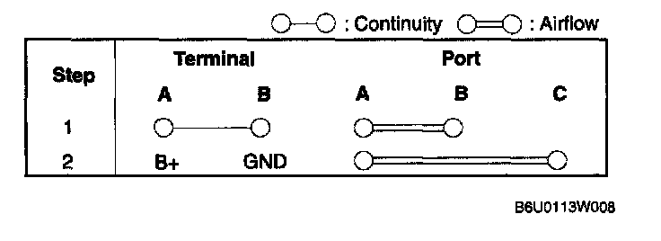 VARIABLE AIR DUCT (VAD) CONTROL SOLENOID VALVE INSPECTION1. Remove the VAD control solenoid valve. (See INTAKE-AIR SYSTEM REMOVAL/INSTALLATION.)