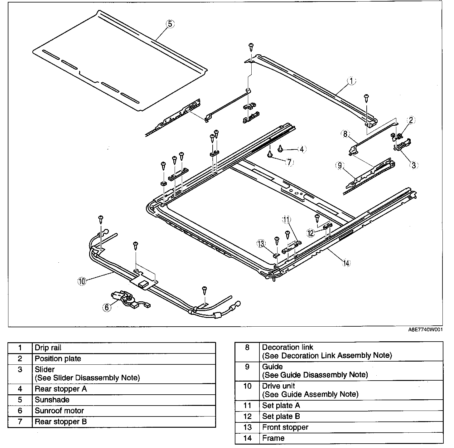2. Slide the slider rearward, and remove it from the sunroof frame.