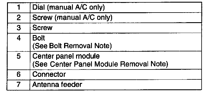 CENTER PANEL MODULE REMOVAL/INSTALLATION1. Disconnect the negative battery cable.
