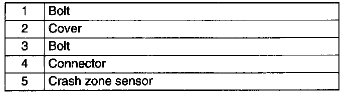 CRASH ZONE SENSOR REMOVAL/INSTALLATIONWARNING: Handling the crash zone sensor improperly can accidentally deploy the air bag module and pre-tensioner seat belt, which may seriously injure you. Read AIR BAG SYSTEM SERVICE WARNINGS before handling the crash zone sensor. (See AIR BAG SYSTEM SERVICE WARNINGS.)