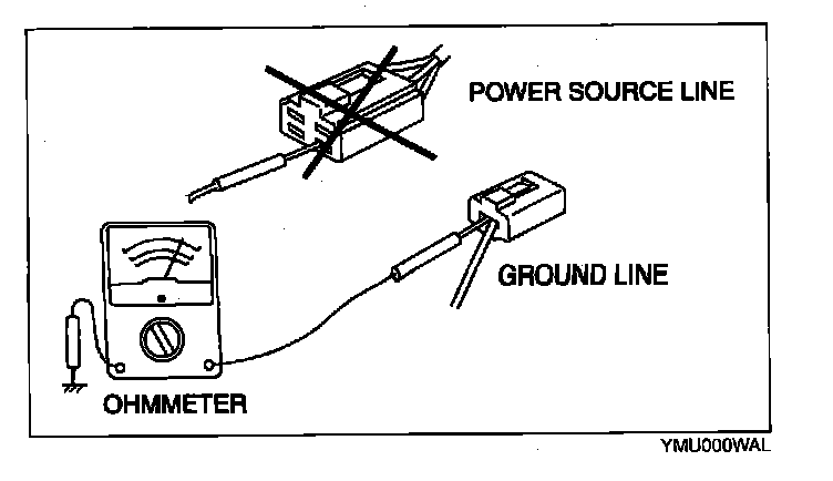CAUTION: Do not connect the ohmmeter to any circuit where voltage is applied. This will damage the ohmmeter.