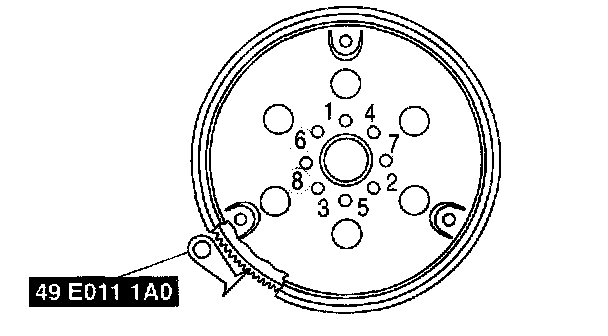 Tighten the drive plate mounting bolts in two or three steps in the order shown.