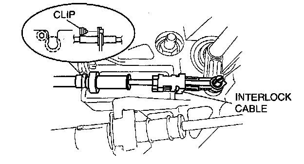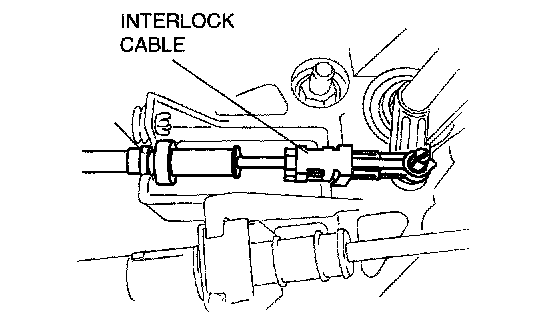 16. Install the interlock cable end to the interlock link on the selector lever.