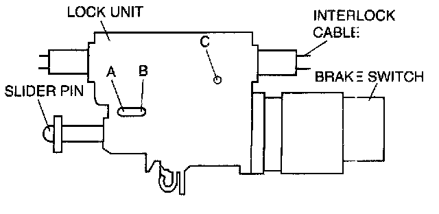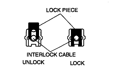^ Applying a load to the interlock cable while pressing the lock piece in can affect the lock unit operation.