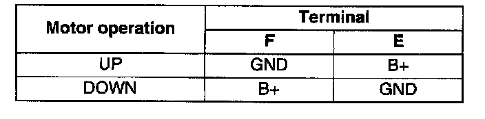 terminals and inspect the power window motor operation.