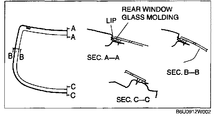 REAR WINDOW GLASS REMOVAL1. Remove the headliner.